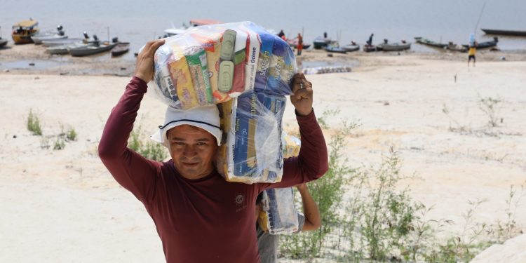 A ajuda humanitária voltada às famílias atingidas pela estiagem extrema vai continuar pelas comunidades ribeirinhas seguindo o cronograma de entrega montado pela Prefeitura de Manaus.