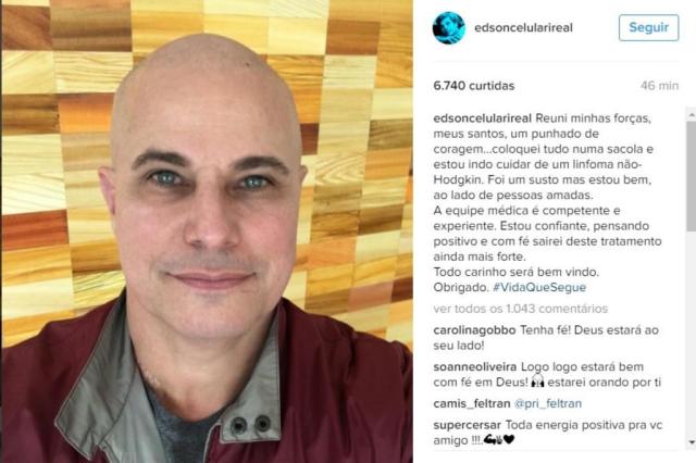 Rio – Edson Celulari, de 58 anos, foi diagnosticado com linfoma não-Hodgkin. Conforme informações do jornal O Globo, o ator levou um susto com o diagnóstico e já deu início ao tratamento. Na manhã desta segunda-feira, ele publicou em sua conta no Instagram uma foto com a cabeça raspada e legenda falando sobre a doença: