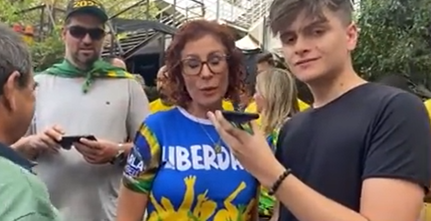 O caso aconteceu durante ato bolsonarista. O youtuber a questiona sobre o posicionamento do governo federal sobre a falta de oxigênio nos hospitais de Manaus uma semana antes do colapso.