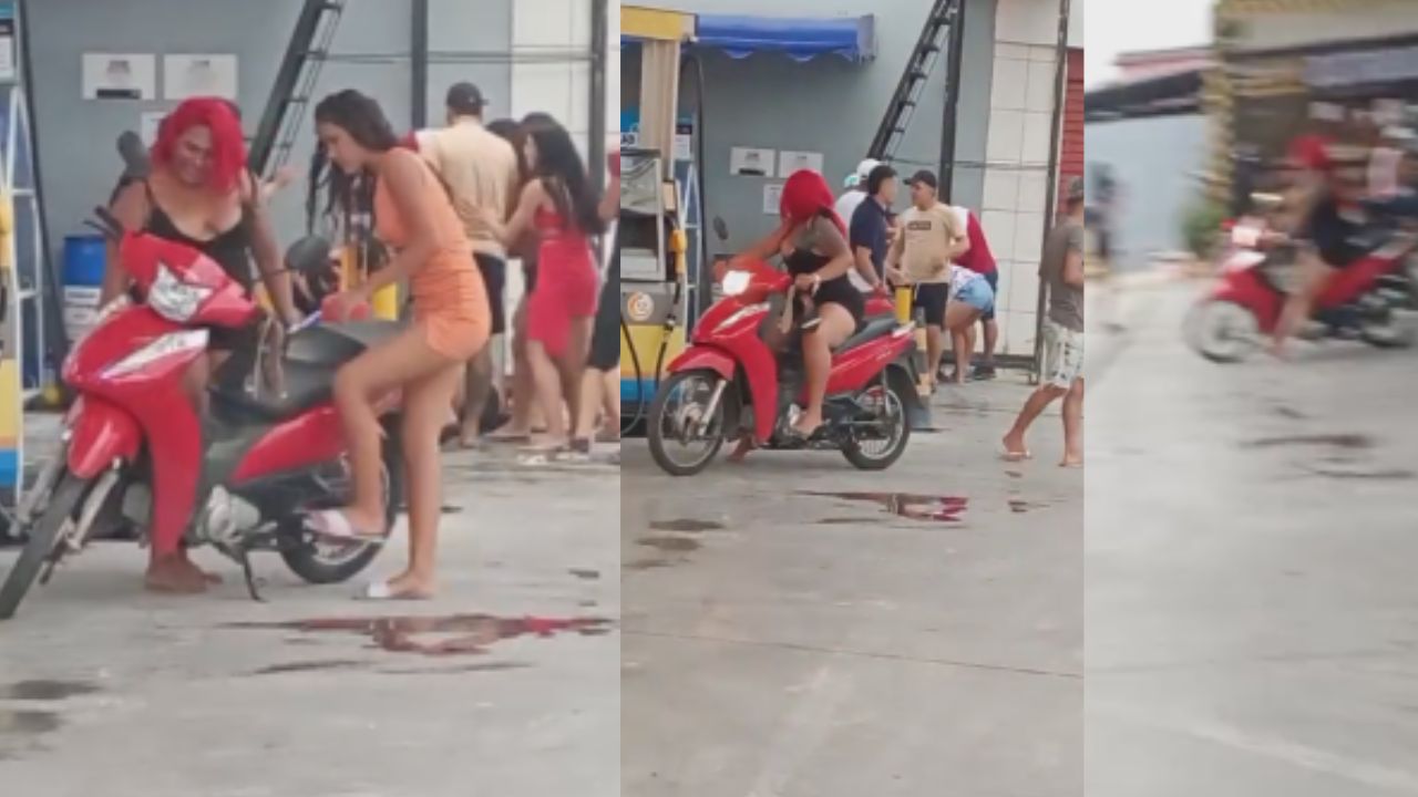 Um motoqueiro que passava pelo posto Ipiranga viu que estava acontecendo uma grande confusão envolvendo várias pessoas e começou a filmar. Nessa hora, ele registrou ‘a fuga da cachaça’.