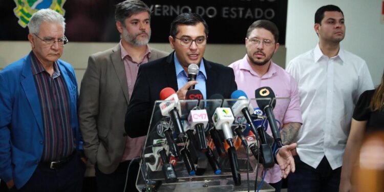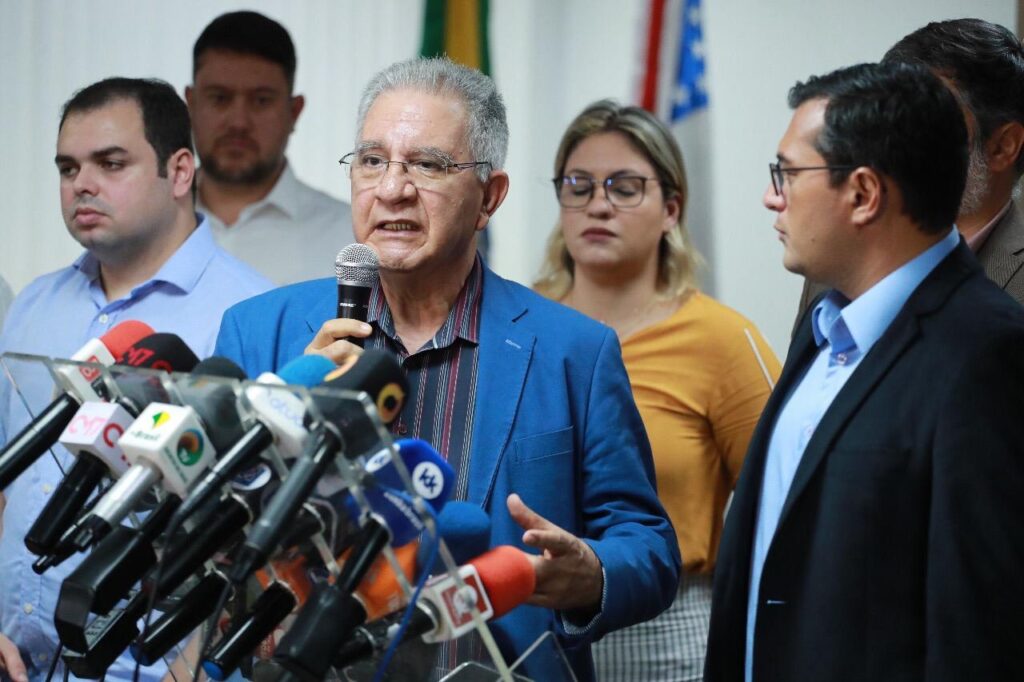 Manaus- AM|Onze deputados estaduais participaram, ao lado do governador do Amazonas, Wilson Lima, de coletiva de imprensa na sede do governo para falar sobre a situação do hospital Francisca Mendes.