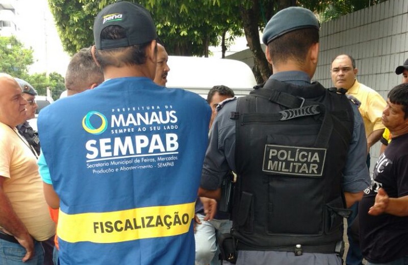 Manaus – Policiais da 22ª Companhia Interativa Comunitária (Cicom) e Secretaria Municipal de Produção e Abastecimento de Manaus (Sempab) apreenderam alimentos e acessórios eletrônicos para informática durante fiscalização, na manhã desta terça-feira, 14, na Rua Acre, no Conjunto Vieralves, zona centro-sul de Manaus. A ação foi para retirar ambulantes que vendem frutas, acessórios para automóveis e material eletrônico no semáforo.