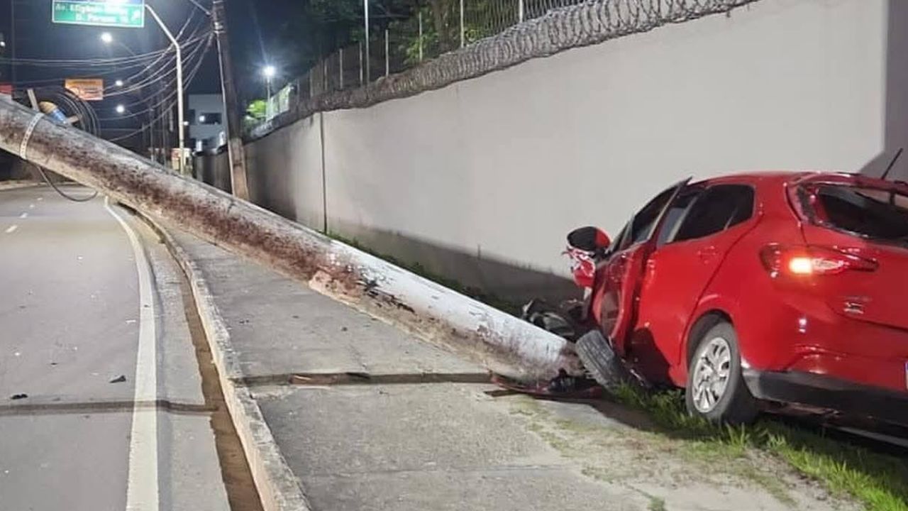 MANAUS (AM) – Na madrugada deste sábado (16), um acidente de trânsito causou transtornos na Avenida das Torres, zona norte de Manaus, após um veículo modelo Argo, de cor vermelha, colidir contra um poste de energia elétrica.