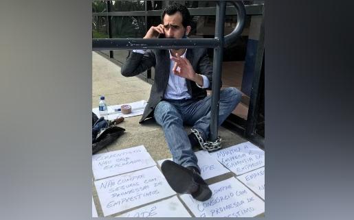 CURITIBA| Nesta segunda-feira (13), o empresário Arlindo Ventura, conhecido como “Magrão”, teve a iniciativa de ir até uma agência da Caixa Econômica Federal (CEF) de Curitiba para protestar. Acorrentado sobre o corrimão do local, Magrão exigiu respostas sobre a linha de crédito prometida pelo governo federal aos empresários.