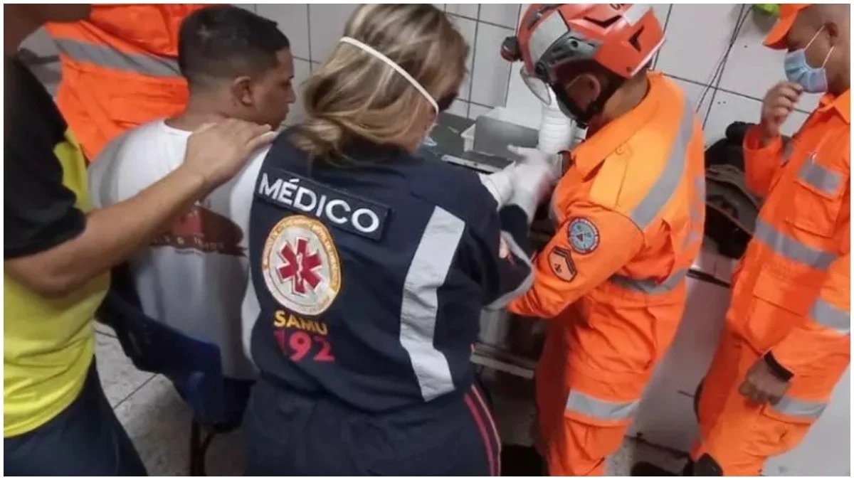 De acordo com a corporação, o trabalhador sofreu intenso sangramento na mão e ficou consciente enquanto era atendido. Depois de ter a mão desencarcerada da máquina, ele foi levado para um hospital pelo Samu.