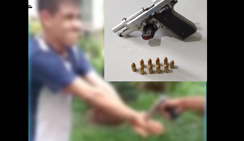 MANAUS (AM) – A polícia apreendeu, nesta sexta-feira (21), um adolescente de 17 anos que seria um dos envolvidos no vídeo do “tribunal do crime”, onde duas pessoas aparecem sendo castigadas com tiros nas mãos. Ele foi pego na rua Podar, bairro Monte Pascoal, na Zona Norte da cidade, com uma arma de fogo.