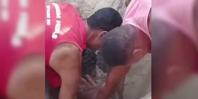 Nas imagens é possível ver o rapaz já com parte do corpo fora da areia, aparentemente desmaiado, no vídeo também é possível ver que o jovem recebe respiração boca a boca de um dos agente que participa do resgate.