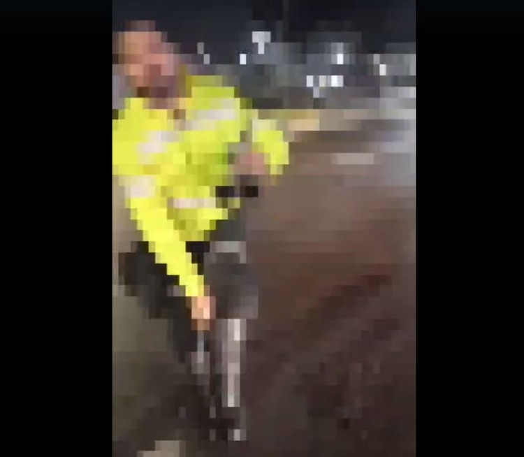 Os dois discutem e em determinado momento, o agente se abaixa e tira algo da bota, que o motorista alega ser uma arma: “Tu tá armado parceiro?”, questiona. O agente responde que sim e que é polícia agora: “Claro, p**** eu sou polícia agora!”