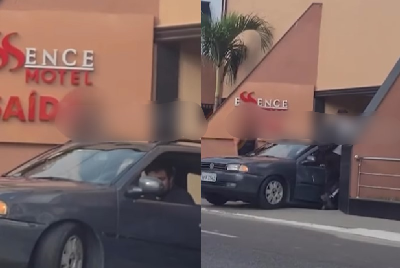 MANAUS (AM) – Uma cena inusitada foi flagrada na saída do motel Essence, no bairro Compensa, Zona Oeste de Manaus, nesta segunda-feira (31). Em pleno Dia do Orgasmo um casal ficou “no prego” na saída do local. A cena foi filmada e viralizou.