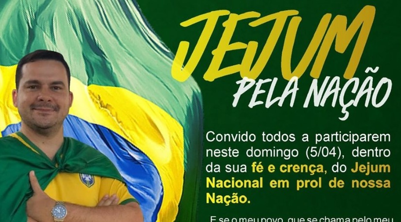 A ideia do jejum religiogo lançada a partir do presidente Jair Bolsonaro foi acolhida pelo deputado. Em uma entrevista à Rádio Jovem Pan no dia 02/04, Bolsonaro afirmou que gostaria de ver a população em jejum.