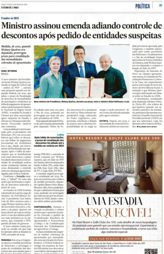 MANAUS – Pré-candidato ao Senado nas eleições de 2026, o deputado federal Alberto Neto (PL) está na mídia nacional nesta terça-feira (6), após ter o nome dele vinculado ao esquema bilionário que fraudou aposentados em todo o Brasil. O nome dele é citado como relator da emenda que flexibilizou os descontos e foi utilizado pelas supostos fraudadores. O político foi denunciado por uma reportagem do Estado de São Paulo está nas versões impressa e on line do jornal.