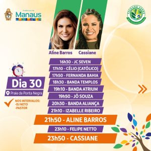 Nesta sexta-feira (30), a cantora Aline Barros chega a Manaus para o Réveillon Gospel que será realizado na praia da Ponta Negra, zona Oeste de Manaus.