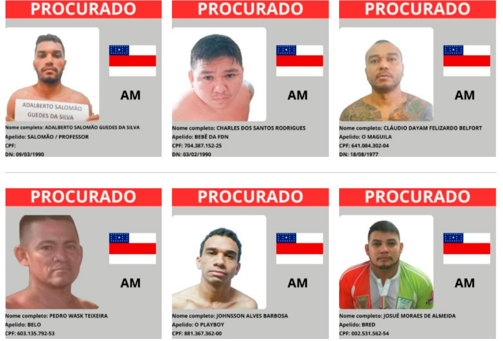 MANAUS -O Ministério da Justiça divulgou a lista dos bandidos mais perigosos e procurados do Brasil, e 8 deles são do Amazonas. Todos estão na lista de prioridades para serem presos, pois são ligados a facções, respondem por tráfico, homicídio e pelo comando do crime no Amazonas.