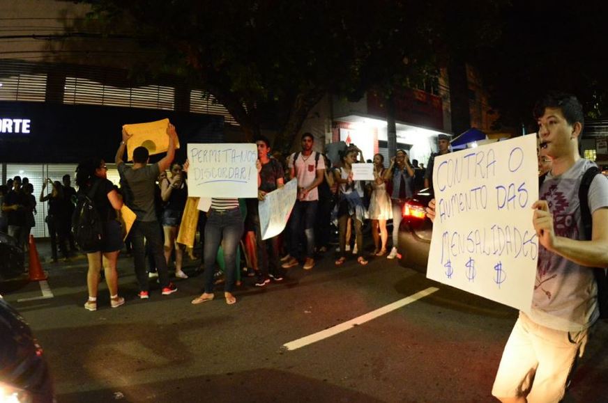 Os alunos também reivindicam contra o aumento semestral das mensalidades, além de pedirem o cancelamento das disciplinas à distância, que são obrigatórias pelo Ministério da Educação (Mec).
