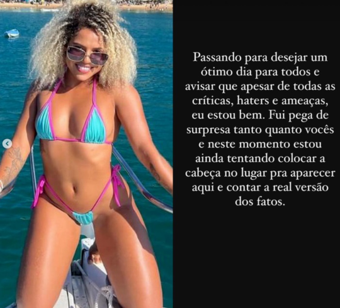 BRASIL – A suposta amante do jogador Yuri se manifestou nas redes sociais. A modelo disse que ficou surpresa com a revelação do caso, mas que não se abala. “Estou bem”.