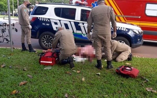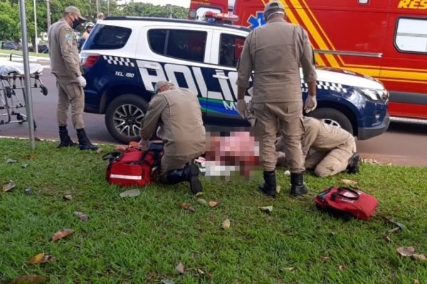 Durante a confusão, nu, o ferido a tiro conseguiu correr para a avenida, onde passava viatura da PM, que parou para socorrê-lo. Muito ensanguentado, ele conseguiu contar poucos detalhes do ocorrido e recebeu os primeiros atendimentos do Corpo de Bombeiros na grama de calçada da Assaf Trad. Uma toalha foi levada até a vítima, que depois vestiu uma bermuda.