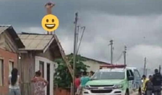 AMAZONAS| Na tarde desta segunda-feira (30), um flagra totalmente inusitado ocorreu no município de Manaquiri. distante 54 quilômetros de Manaus em linha reta. Um homem completamente nu, precisou subir no telhado de sua amante, para não ser morto pelo marido dela, que encontrou os dois juntinhos na cama.
