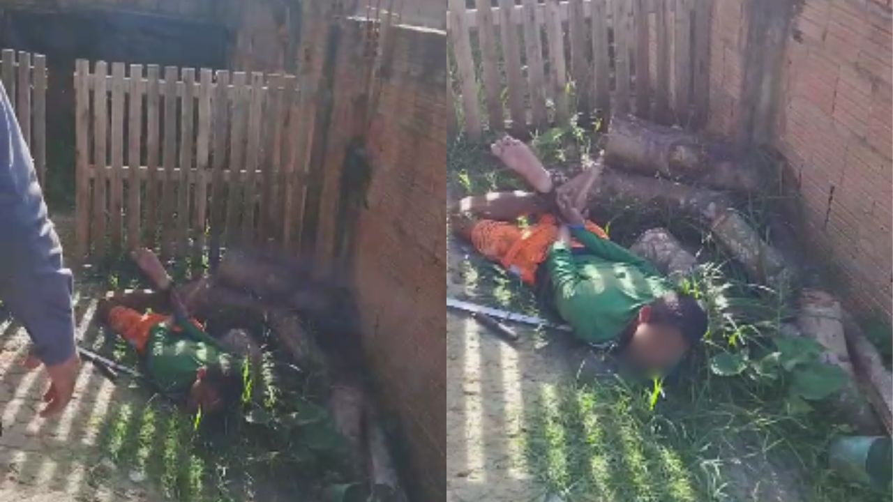 Quando chegaram no local, o indivíduo estava amarrado e com vários hematomas pelo corpo. Ele também tinha perfurações.