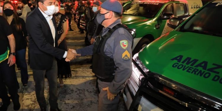 Em janeiro, o governador Wilson Lima entregou mais 68 novas viaturas de quatro e duas rodas e outros 4 mil itens para auxiliar o trabalho das forças de segurança pública, em ações de combate à criminalidade e salvamento no estado.