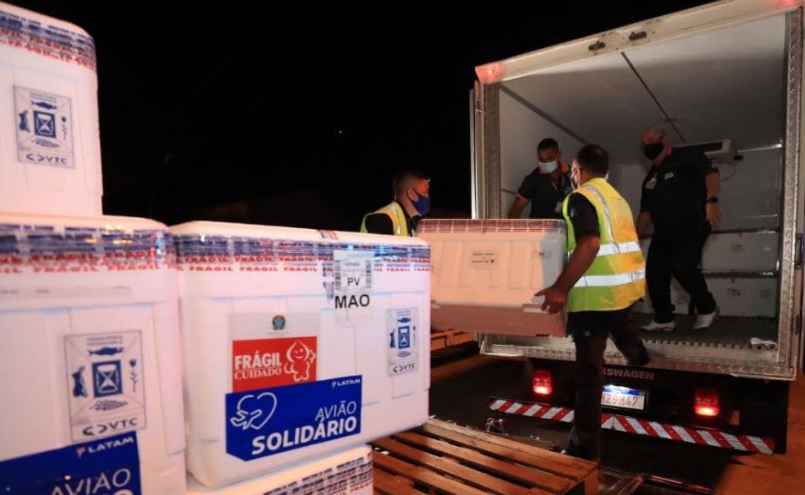 As novas doses foram desembarcadas no Aeroporto Internacional Eduardo Gomes por volta das 19h. A remessa conta com 88.000 doses da vacina CoronaVac e 10.500 doses da vacina AstraZeneca. Parte desse quantitativo será destinada para atender a segunda dose de uma parcela já vacinada, explica a coordenadora estadual de imunização da Fundação de Vigilância em Saúde (FVS-AM), Isabel Nascimento.