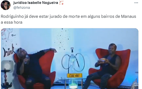 Mesmo assim, foi o suficiente para Rodriguinho ser detonado nas redes sociais, já que esse será o segundo paredão e a amazonense tem conquistado muitos fãs. Muitos disseram que não pisam mais em nenhum show do cantor e outros ainda brincaram com os “salves” que as facções criminosas de Manaus costumam mandar quando estão descontentes ou querem eliminar um rival.