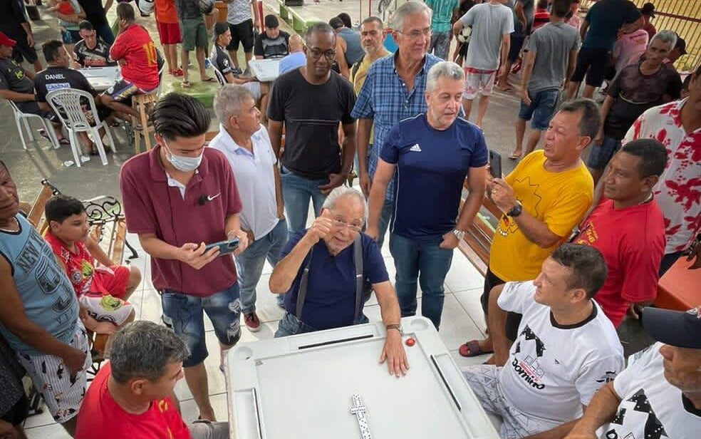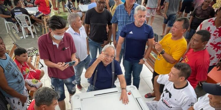 MANAUS (AM) – O pré-candidato ao Governo do Amazonas, Amazonino Mendes (PSDB-Cidadania) aproveitou o sábado de aleluia para jogar dominó na Zona Leste. Amazonino foi convidado para participar da Universidade do Dominó, que fica na arena do São José 2 e jogou três partidas, ganhou duas e perdeu uma. “Aqui é minha praia. Todos sabem que dominó é meu passatempo preferido. Me divirto muito com tudo isso”, disse.