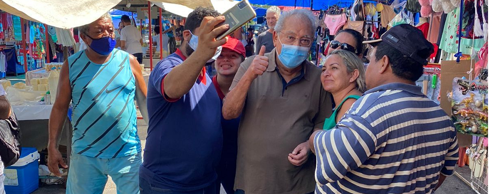MANAUS (AM) – | O ex-governador Amazonino Mendes foi à feira da Aparecida no início da tarde desta terça-feira (23) e teve uma recepção calorosa. Foram 40 minutos em contato direto com feirantes e frequentadores que faziam declarações de apoio, tiravam fotos, selfies e relatavam a insatisfação com a atual situação de crise do Amazonas, que apresenta recorde de desemprego, fome, caos na segurança e com a saúde em colapso, além da falta de oportunidades.