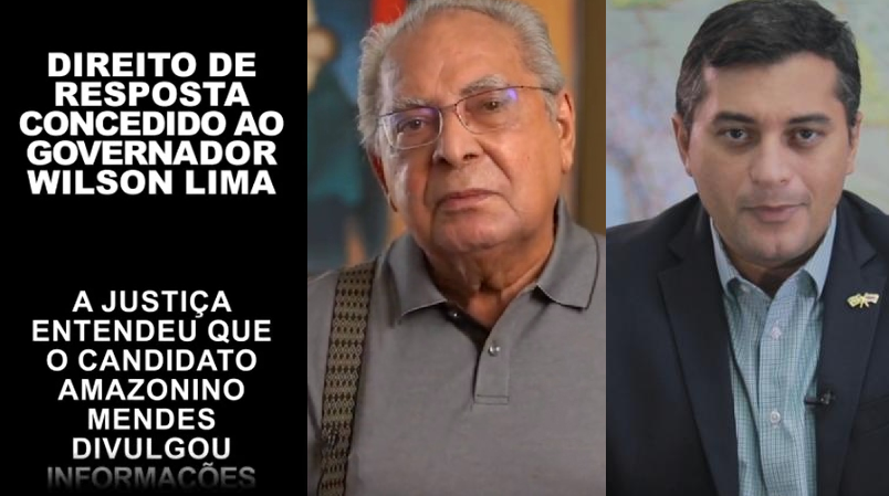 MANAUS (AM) – O candidato ao governo do Amazonas, Amazonino Mendes (Cidadania), teve que publicar nas próprias redes sociais um direito de resposta do candidato à reeleição como governador, Wilson Lima (União Brasil). A postagem foi feita na madrugada desta sexta-feira (26).