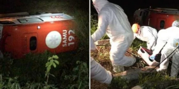 SANTA RITA-PB| Na madrugada desta terça-feira (12),uma ambulância do Samu (Serviço de Atendimento Móvel de Urgência), capotou na BR-230, na cidade de Santa Rita, na Paraíba. Uma idosa de 91 anos com suspeita de coronavírus e um enfermeiro acabaram indo a óbito com o acidente. Havia mais duas pessoas dentro da ambulância, que sofreram ferimentos leves. O Corpo de Bombeiros foi acionado no local para fazer o resgate das vítimas.