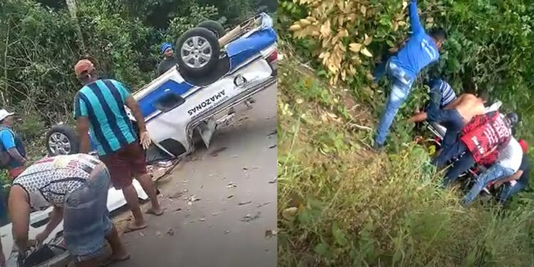 AMAZONAS | Uma ambulância capotou na tarde desta sexta-feira (13), em uma estrada que liga os municípios amazonenses de Itapiranga e São Sebastião do Uatumã, no Amazonas.