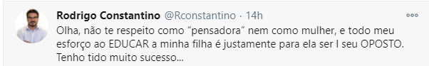 A funkeira concluiu a discussão dizendo que era um alívio não ter o respeito de Constantino.
