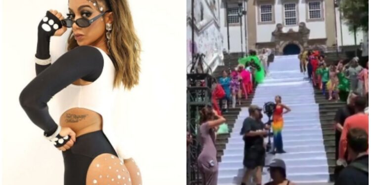 Salvador – BA| As gravações do clipe novo da Anitta em Salvador continuam a todo vapor! Saíram fotos e vídeos da cantora em uma nova locação: a escadaria da Igreja do Passo, conhecida por aparecer no filme “O Pagador de Promessas” (1962). Ela gravou uma cena do clipe na frente da igreja, com um vestido nas cores do arco-íris e acompanhada de represantes da comunidade LGBTQI+, devidamente coloridos também.