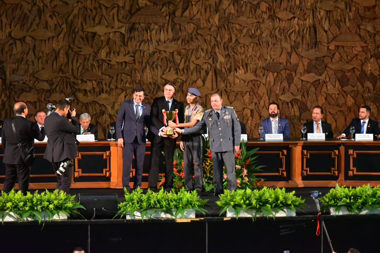 Exemplo para o Brasil – Na cerimônia em homenagem aos alunos premiados, Jair Bolsonaro disse estar emocionado e que os alunos do Amazonas são um exemplo. “É impossível não se emocionar num momento como esse. O que liberta o homem ou a mulher é o conhecimento, é o estudo, e vocês tão dando esse exemplo no momento. Não existe maior satisfação para um pai ou para uma mãe em ter a certeza que seu filho ou sua filha será melhor do que ele. O estudo liberta, o estudo faz progresso e traz felicidade” ressaltou Bolsonaro.