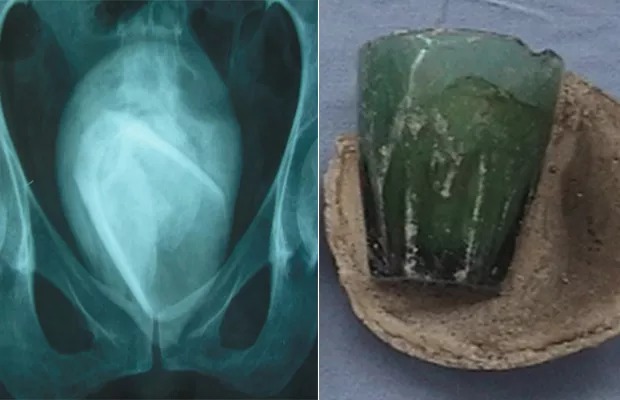 TUNÍSIA | Uma mulher de 45 anos, da Tunísia, teve um copo de vidro removido cirurgicamente da bexiga após passar quatro anos com o objeto alojado nas partes íntimas. Ela foi ao Hospital Acadêmico Habib Bourguiba reclamando de dores comuns em diagnósticos de infecção urinária. Por meio de exames, no entanto, os médicos descobriram que se tratava de um copo de vidro no órgão da paciente.