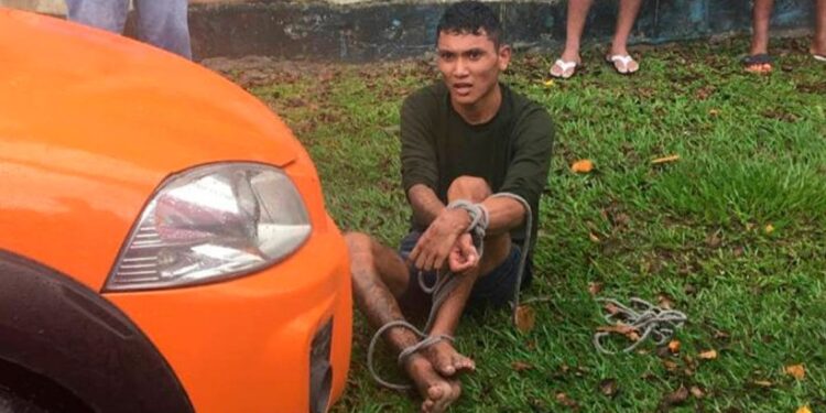 MANAUS-AM| Na tarde desta segunda-feira (13), um homem não identificado foi preso, depois de roubar uma jovem em Manaus. O crime aconteceu na rua Nove, do conjunto Vila Nova, na Zona Norte da capital. De acordo com a vítima, o criminoso a abordou na hora em que ela saia de sua residência. Ele usou uma arma branca para lhe ameaçar.