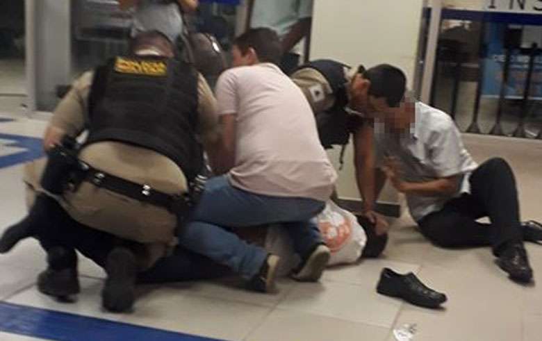 Com a chegada dos polícias na agência, o homem ficou mais surtado, passando tentando tomar o cartão das mãos esposa e, também, a arma de um dos policiais.