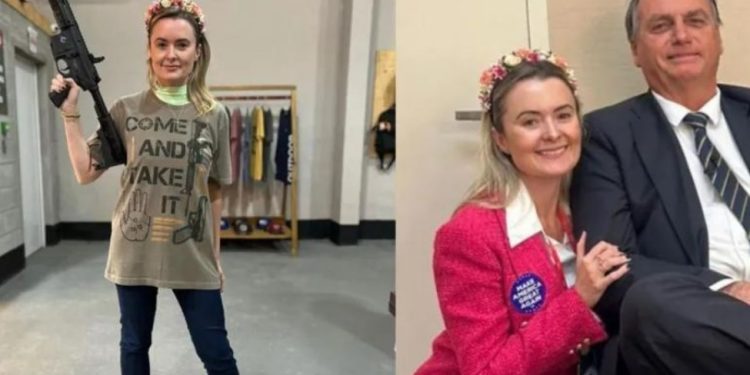 “Bolsonaro, o Brasil sente a sua falta”, escreveu a deputada em uma mensagem e disse que “um povo armado jamais será escravizado”.
