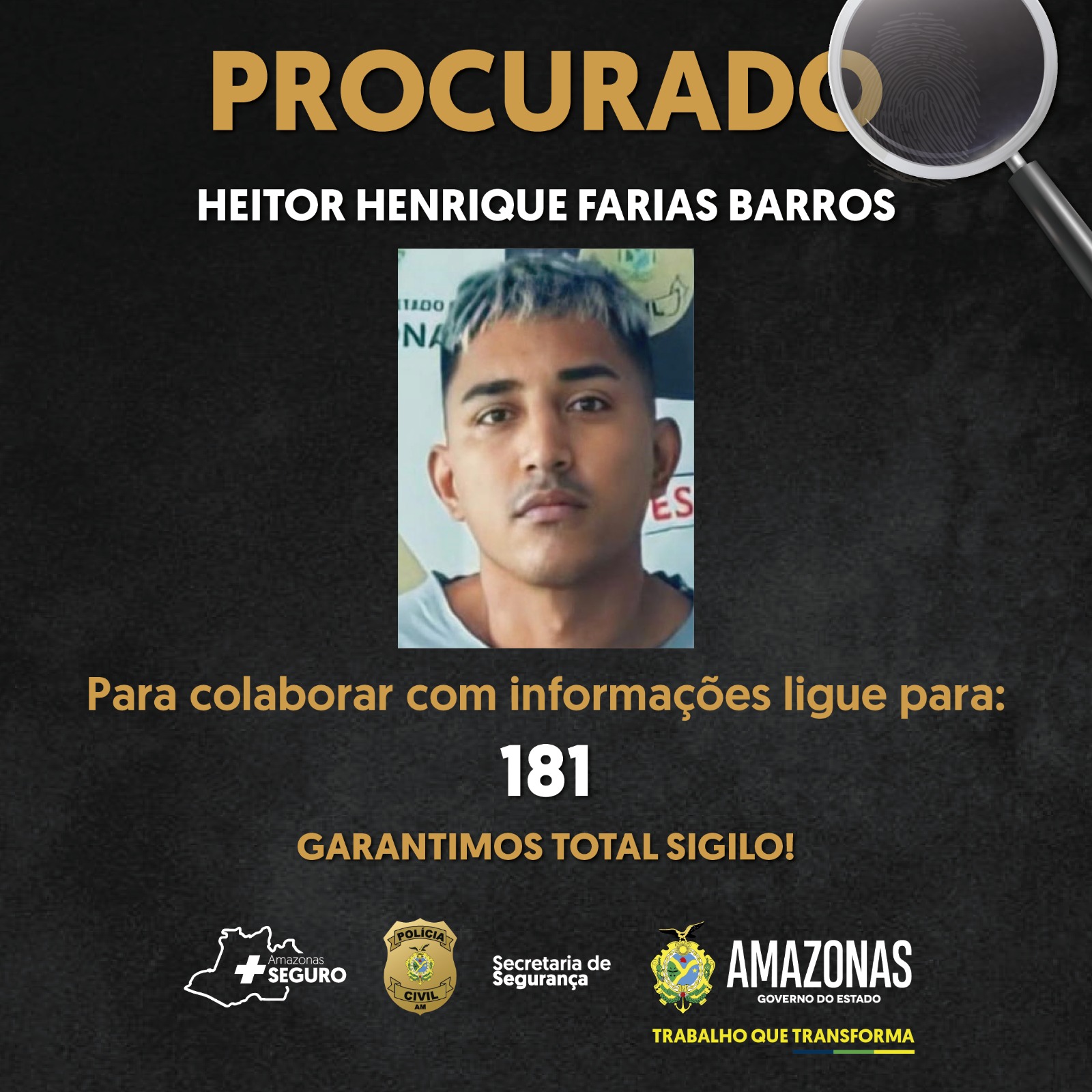 MANICORÉ (AM) – A Polícia Civil do Amazonas (PC-AM), por meio da Delegacia Interativa de Polícia (DIP) de Manicoré (a 332 quilômetros de Manaus), reforça a divulgação das imagens de Carlos Eduardo Trindade de Oliveira, conhecido como “Maraca”; Gilmar Gaspar Prado da Costa Júnior, conhecido como “Baiano”; e Heitor Henrique Farias Barros, que estão foragidos da Justiça, naquele município, após conseguirem escapar da carceragem da delegacia.