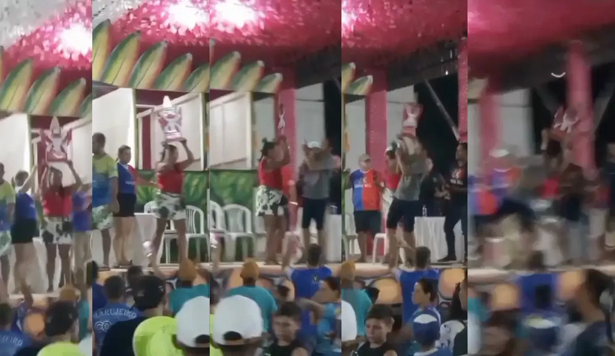 Na noite desta sexta-feira (8), durante a entrega dos títulos, a dirigente do boi vermelho e branco, o boi Tira Prosa, Edna Sarmento pegou o troféu de vice-campeã e arremessou do palco ao chão.
