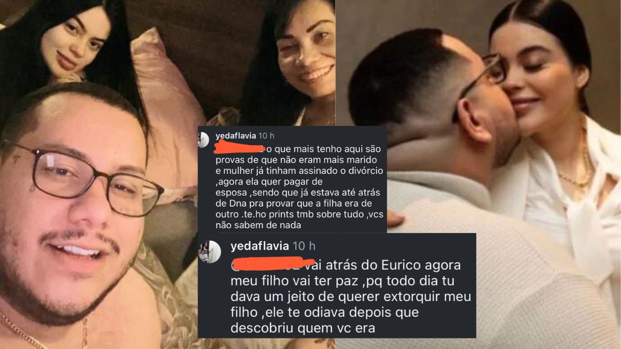 Tudo começou quando Yeda comentou em uma publicação de uma página de fofoca no Instagram dizendo: “Parem de associar o nome do meu filho a ela”. Em seguida, ela escreve: “O que eu mais tenho aqui são provas de que não era mais marido e mulher já tinham assinado o divórcio, agora ela quer pagar de esposa, sendo que já estava até atrás de DNA pra provar que a filha era de outro, tenho prints tmb sobre tudo, vocês não sabem de nada”.
