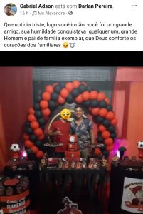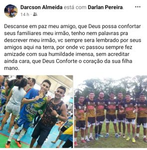 Nas redes sociais muitos amigos e familiares publicaram dedicatórias a Darlan, que deixa uma filha de 6 anos.