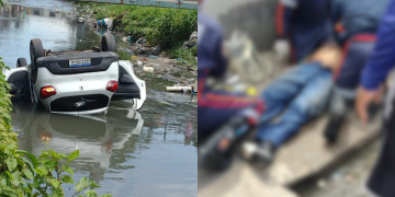 Após perder controle de carro, motorista cai em igarapé e morre afogado