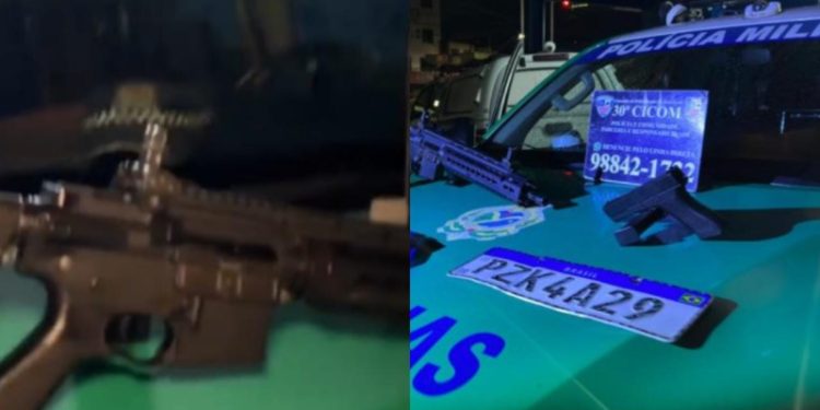 “O veículo abordado seria de um motorista de aplicativo e o mesmo informou para guarnição que não estava ciente de que o passageiro estava com drogas, o condutor de veículo foi liberado. Ainda durante a abordagem o passageiro relatou que teria pego a droga no bairro Novo Aleixo, na casa de um elemento identificado como Ian. Ao chegar na casa do meliante foram encontrados mais entorpecentes e duas réplicas de arma de fogo, sendo um fuzil e uma pistola. Ian seria membro de uma facção criminosa e ambos foram encaminhados para a delegacia, porém, o passageiro que seria o primeiro abordado foi registrado apenas o (TCO), já Ian foi enquadrado por tráfico de drogas”, disse o capitão.