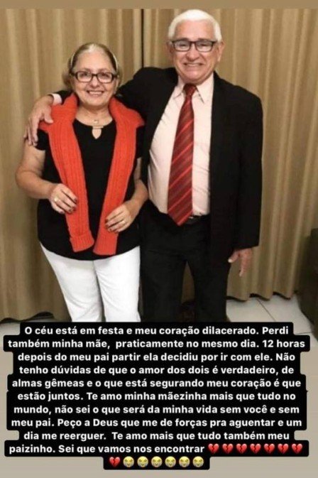 A coordenadora conta que sua mãe foi internada no mesmo dia em que recebeu a confirmação de que estava com a Covid-19 (23/7). Já seu pai foi hospitalizado na véspera de pegar o resultado (30/7). Da unidade de saúde, porém, eles não saíram mais. Primeiro morreu o pai da servidora, nesta quarta-feira (4), cerca de 12 horas depois, foi a vez da mãe — coincidindo com o dia do próprio aniversário.
