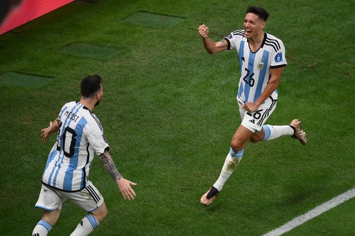 Enzo Fernández chutou para fora. De Jong bateu com paradinha e empatou. A bola do jogo ficou com Lautaro, que colocou a bola na rede.