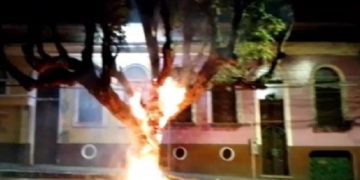 ADVERTISEMENTMANAUS (AM) – Um oitizeiro (Licania tomentosa) de mais de 100 anos localizado na Rua Ferreira Pena, no Centro de Manaus, foi incendiado na noite desta segunda-feira (24). Segundo dois guardadores de carro, o fogo começou em um papel deixado ao pé da árvore. Os moradores ficaram assustados com as chamas, e mesmo ligando para … Continue lendo Árvore centenária é incendiada no Centro de Manaus; veja o vídeo