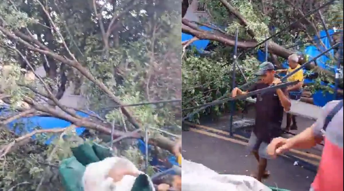 “A árvore daqui da feira da Aparecida acabou de quebrar, ô. Foi agora. Ainda bem que não houve nenhuma vítima”, diz um homem não identificado que filmou os transtornos após a queda.