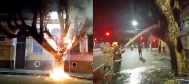 Árvore centenária é incendiada no Centro de Manaus; veja o vídeo