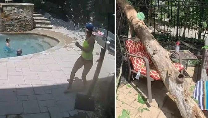 De com a mulher que deu uma entrevista ao Daily Mail, ela estava sentada na piscina relaxando e lendo um livro enquanto assistia os dois filhos nadarem, quando ouviu uma árvore quebrando e, então, o filho gritou: ‘Corra mamãe!’.