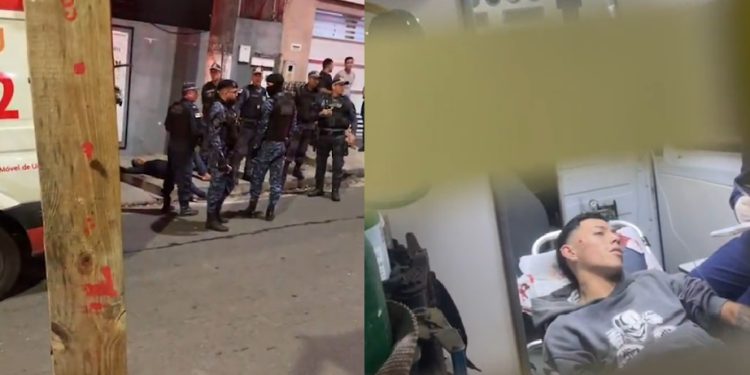 O suspeito baleado foi atendido pelo Samu e o morto ficou na calçada até ser levado pelo IML. O caso foi atendido pela Ronda Ostensiva Municipal (ROMU) que encontrou um simulacro de arma no local.